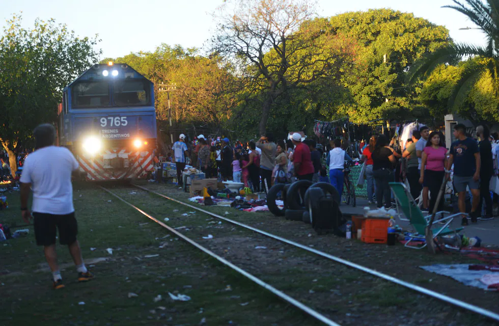 El paso del tren no tiene horarios fijos, pero como mínimo pasa dos veces por día: por la mañana y por la tarde. Esto representa un peligro para los comerciantes y para quienes asisten. En este sentido, los habituales concurrentes a la feria hicieron diferentes publicaciones en redes sociales en los que muestra la alarmante situación.