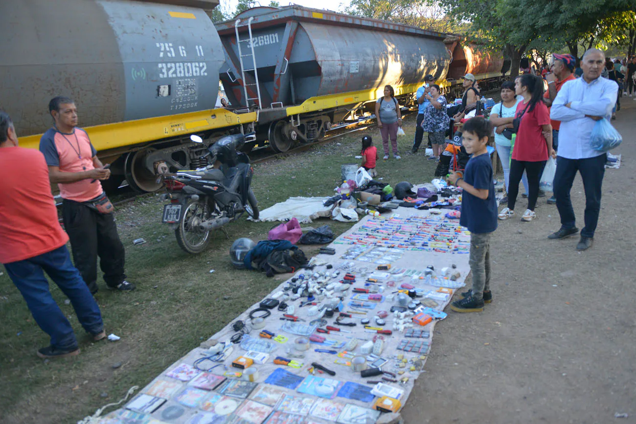 Una situación particular que ocurre durante el desarrollo de la feria tiene que ver con el paso de trenes de carga por el área. Sucede que los puestos se emplazan alrededor de las vías y en algunos casos, sobre ellas. Algunos feriantes colocan sillas o reposeras y otros la mercadería.